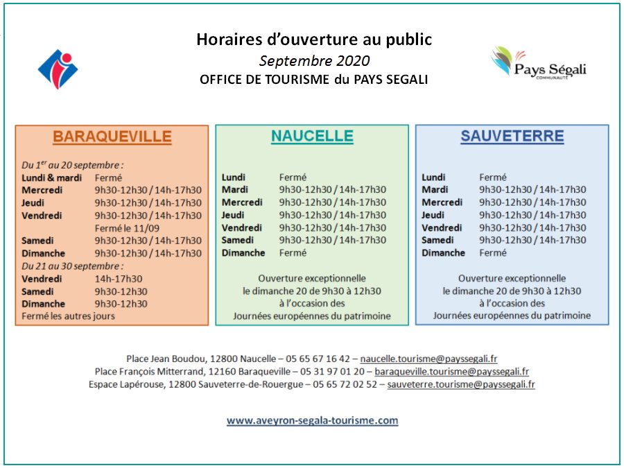 horaires office du tourisme 2020