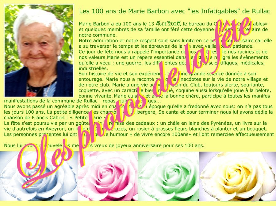 Les photos-100 ans de Marie Barbon avec les Infatigables 10 septembre 2020 900 × 674 Les photos-100 ans de Marie Barbon avec les Infatigables