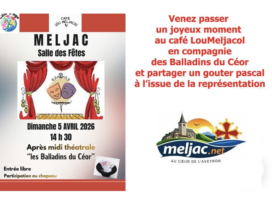 Nouveautés, Page Actualités 05-04-2026. à14h30 – Théatre salle des fêtes de Meljac 31 mars 2026 wpsmn_admin